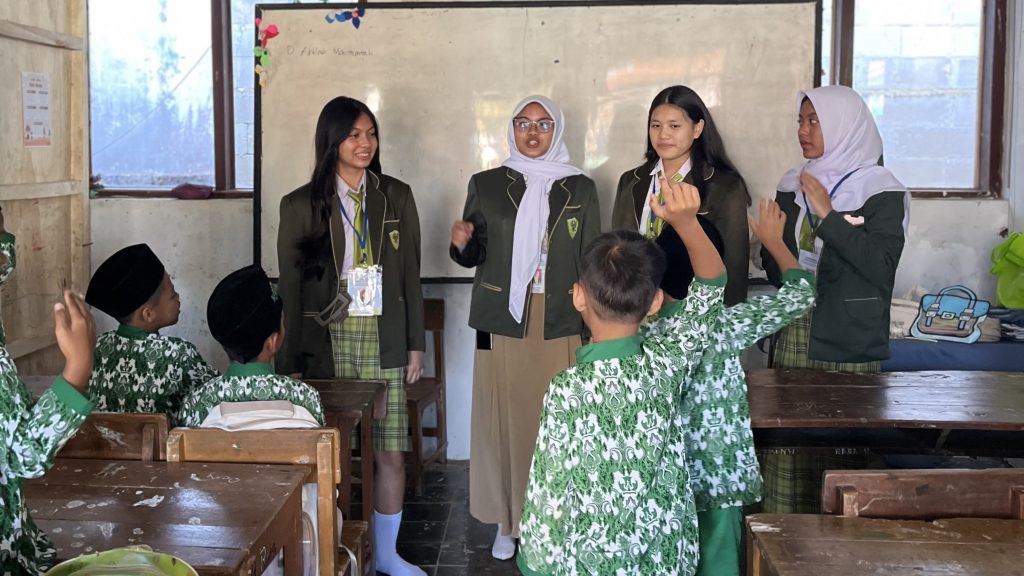 Kegiatan mengajar di sekolah desa juga menjadi bagian penting dari program ini. Para siswa berbagi ilmu dan pengalaman kepada anak-anak di sekolah sekitar, mempererat hubungan emosional sekaligus menumbuhkan rasa percaya diri, tanggung jawab, dan semangat berbagi.