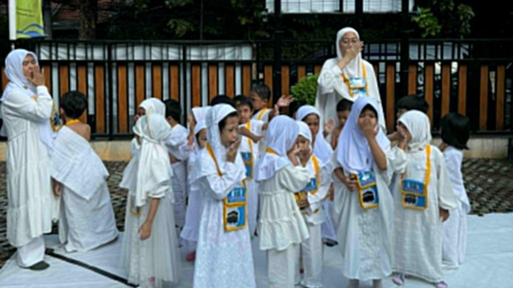 Suasana khidmat namun penuh semangat tampak mewarnai halaman sekolah saat siswa TK Yasporbi I melaksanakan kegiatan manasik haji. Dengan mengenakan pakaian ihram putih-putih sederhana bagi anak laki-laki dan busana muslim untuk anak perempuan, para peserta didik terlihat antusias menjalani simulasi ibadah haji, salah satu rukun Islam yang penting. Kegiatan ini dirancang sebagai bagian dari pembelajaran keagamaan yang disesuaikan dengan usia anak-anak, dengan tujuan menanamkan pemahaman dasar tentang ibadah haji melalui pengalaman langsung yang menyenangkan dan bermakna.