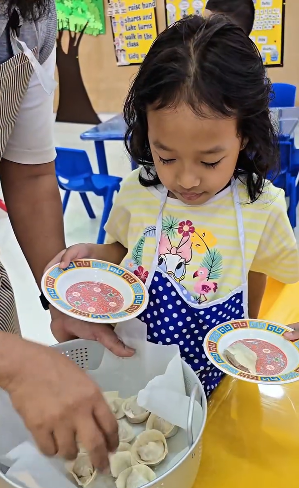 Dalam kegiatan tersebut, Chef Frisal mengajarkan anak-anak cara membuat kudapan khas Cina dan Korea, yaitu kuotie dan mandu. Siswa diperkenalkan dengan bahan-bahan sederhana, proses pembuatan adonan, hingga teknik membentuk dumpling dengan bentuk yang unik dan menarik. Dengan bimbingan guru dan chef, anak-anak mencoba membuat kudapan mereka sendiri, mengikuti setiap langkah dengan antusias dan rasa ingin tahu yang tinggi. Aktivitas ini tidak hanya mengajarkan keterampilan memasak, tetapi juga membiasakan anak-anak untuk sabar, teliti, dan bekerja sama.