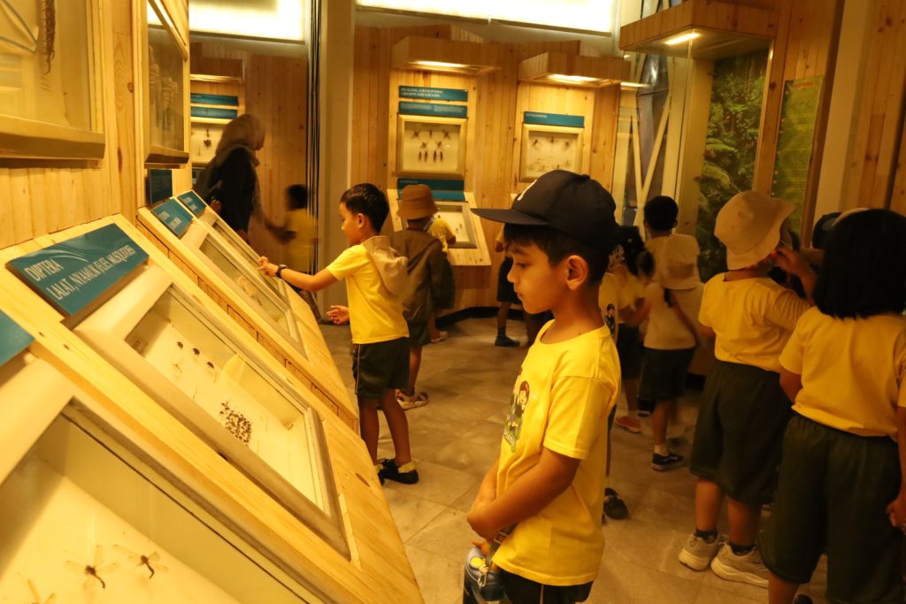 Perjalanan berlanjut ke Museum Serangga, tempat anak-anak berkenalan dengan berbagai jenis serangga dari yang unik hingga langka. Koleksi kupu-kupu berwarna indah menjadi salah satu daya tarik utama yang membuat anak-anak berdecak kagum. Selain itu, mereka juga diajak untuk memahami peran penting serangga dalam menjaga keseimbangan ekosistem, misalnya lebah sebagai penghasil madu dan penyerbuk bunga. Tidak hanya belajar, field trip ini juga menjadi momen kebersamaan yang menyenangkan. Anak-anak diajak bernyanyi, bermain, dan berbagi cerita dengan teman-teman dan guru mereka. Dengan cara yang menyenangkan, anak-anak tidak hanya memperoleh ilmu baru, tetapi juga menumbuhkan rasa cinta terhadap alam dan lingkungan sekitar.