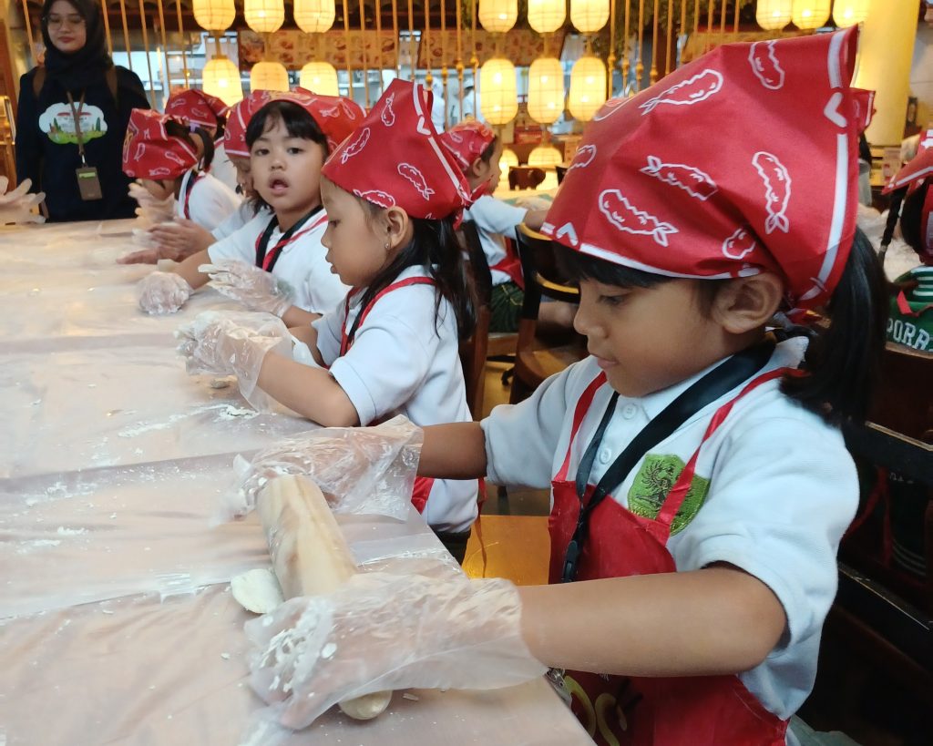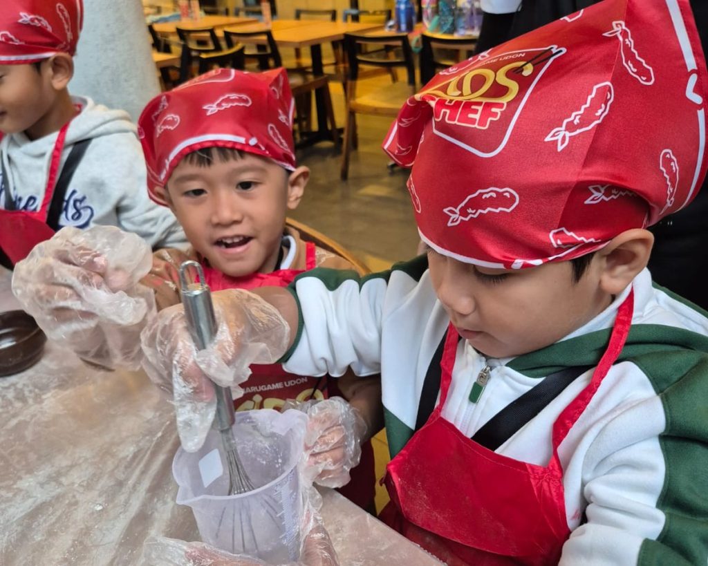 Apron dikenakan, semangat pun dimulai! Anak-anak TK Yasporbi II mengikuti kegiatan cooking class di Marugame Udon dengan penuh antusias. Dalam pengalaman istimewa ini, mereka diajak mengenal bahan, proses pembuatan udon, hingga menyaksikan langsung bagaimana hidangan favorit banyak orang disajikan.